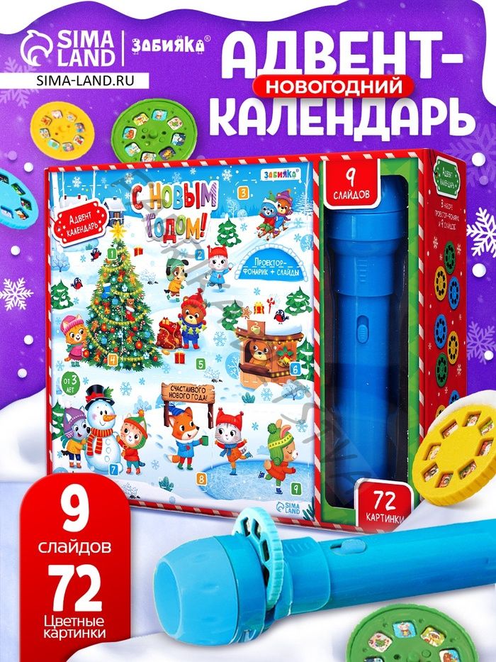 Адвент - календарь «Новогодний», детский, с проектором-фонариком, 9 окошек с подарками: 9 слайдов