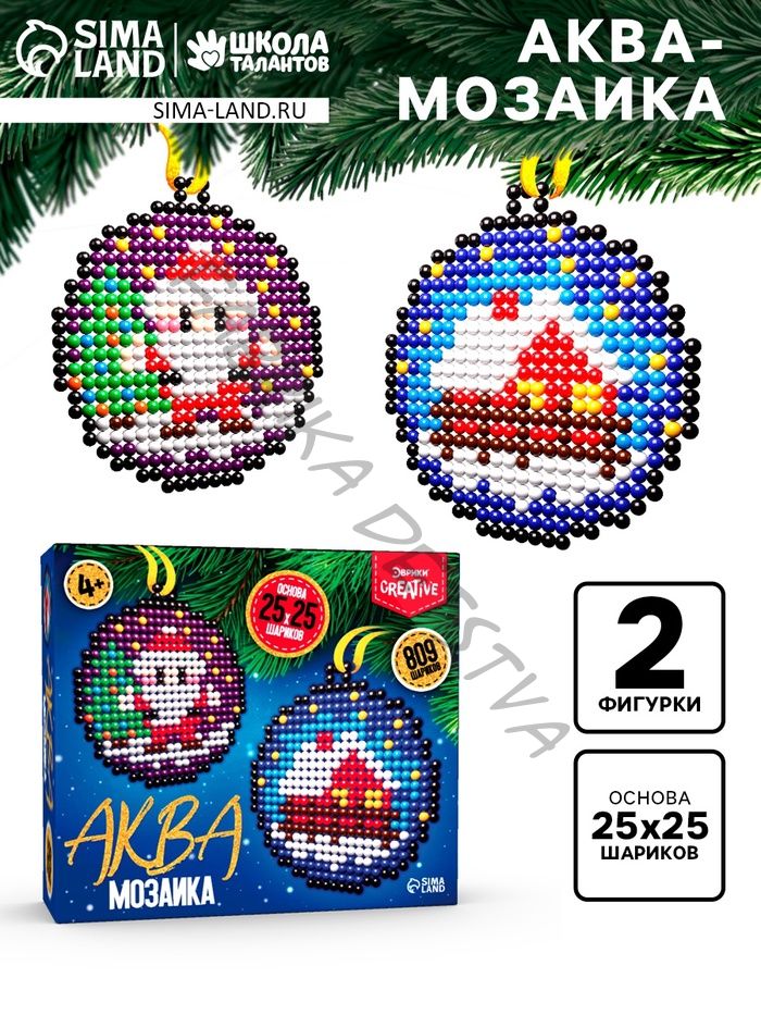 Аквамозаика «Подвесы с Дед Морозом и Домиком», 2 фигурки, 809 шариков