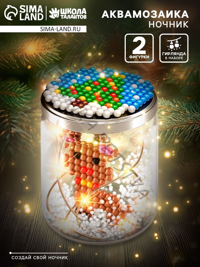 Аквамозаика «Снежная баночка. Оленёнок», ночник, более 200 шариков