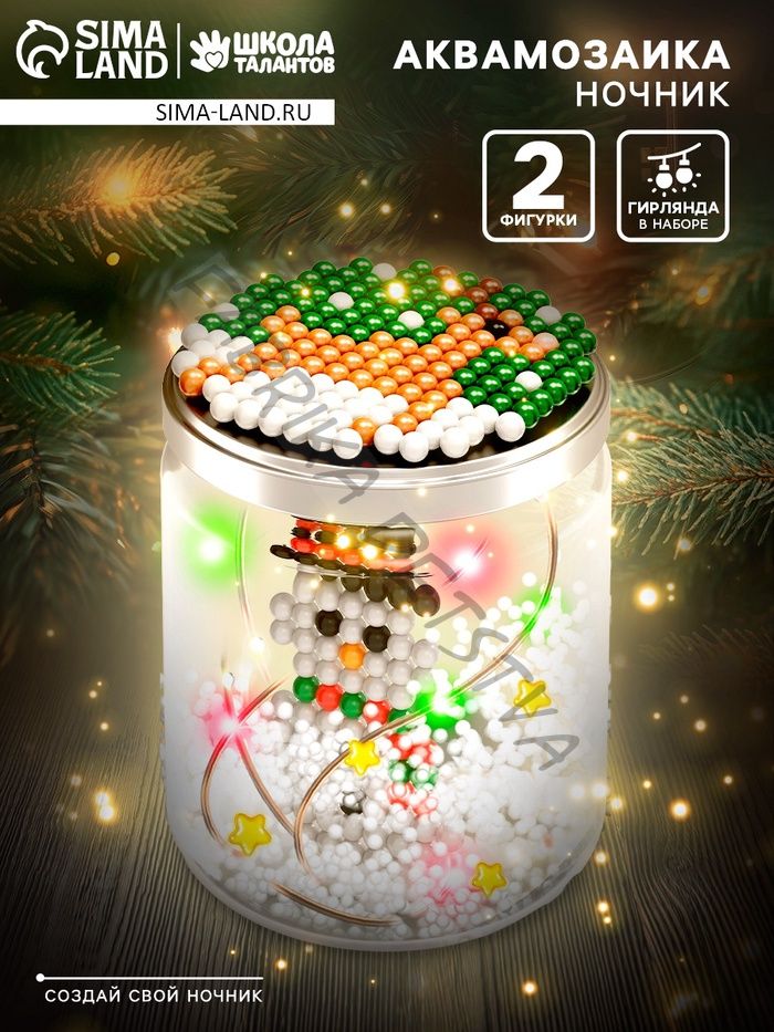 Аквамозаика «Снежная баночка. Снеговичок», ночник, более 200 шариков