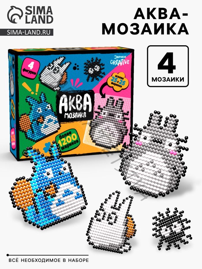 Аквамозаика «Тоторо», более 1200 шариков, 4 фигурки