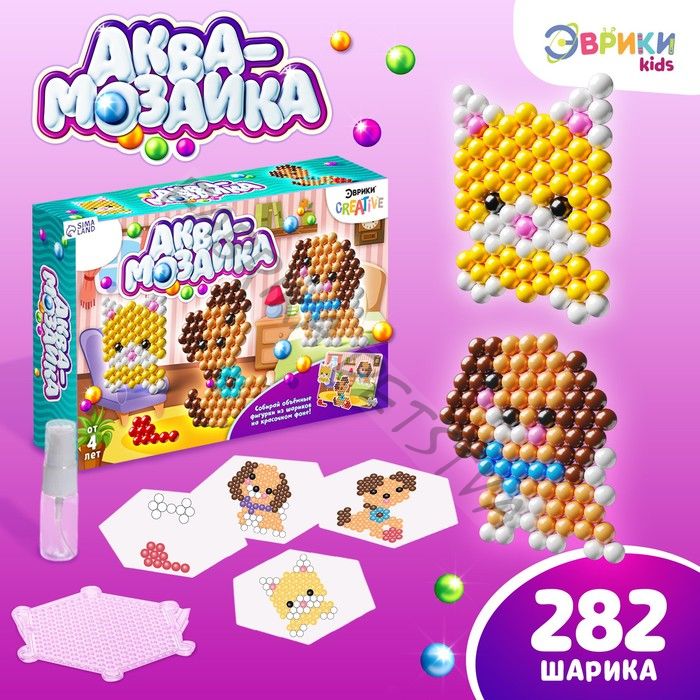 Аквамозаика с декорациями «Зверята», 282 шарика