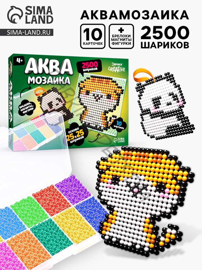 Аквамозаика в контейнере, 2500 шариков, 10 трафаретов, 2 основы