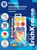 Акварель 18 цветов, ErichKrause Kids Space Animals, медовая, с УФ защитой яркости, пластиковая коробка, европодвес