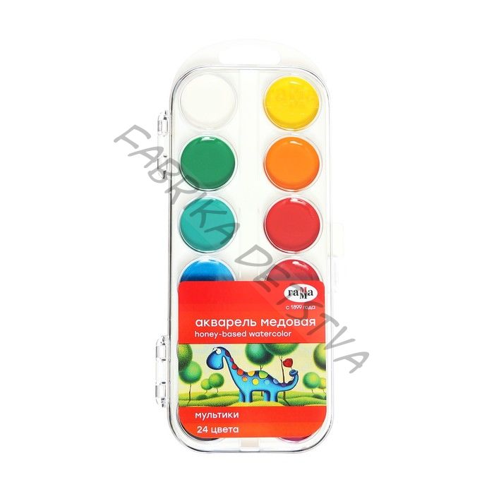 Акварель 24 цвета, «Гамма» «Мультики», без кисти, в пластиковой коробке