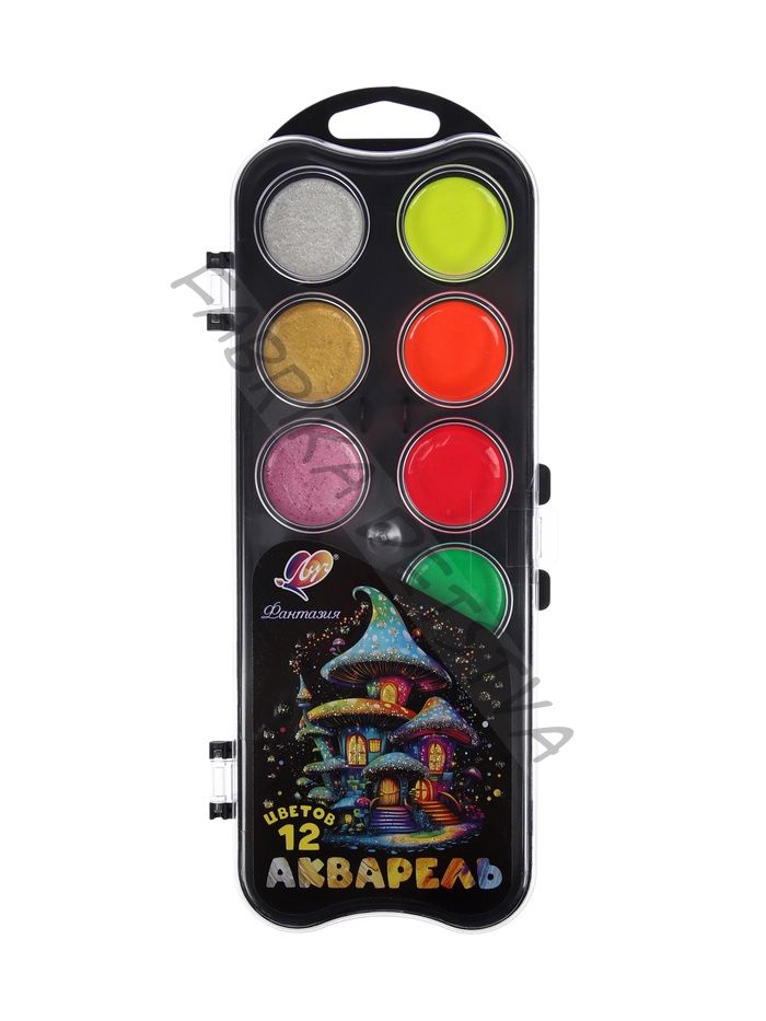 Акварель «Луч: Фантазия», 12 цветов, неон + перламутровый, без кисти