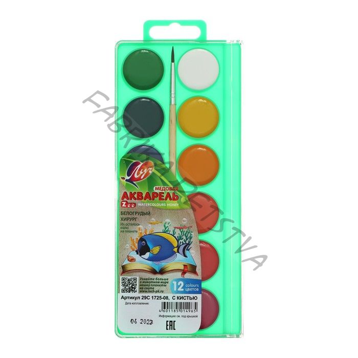 Акварель «Луч. ZOO», 12 цветов, с кистью