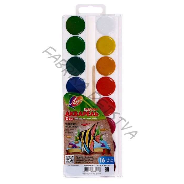 Акварель «Луч. ZOO», 16 цветов, с кистью