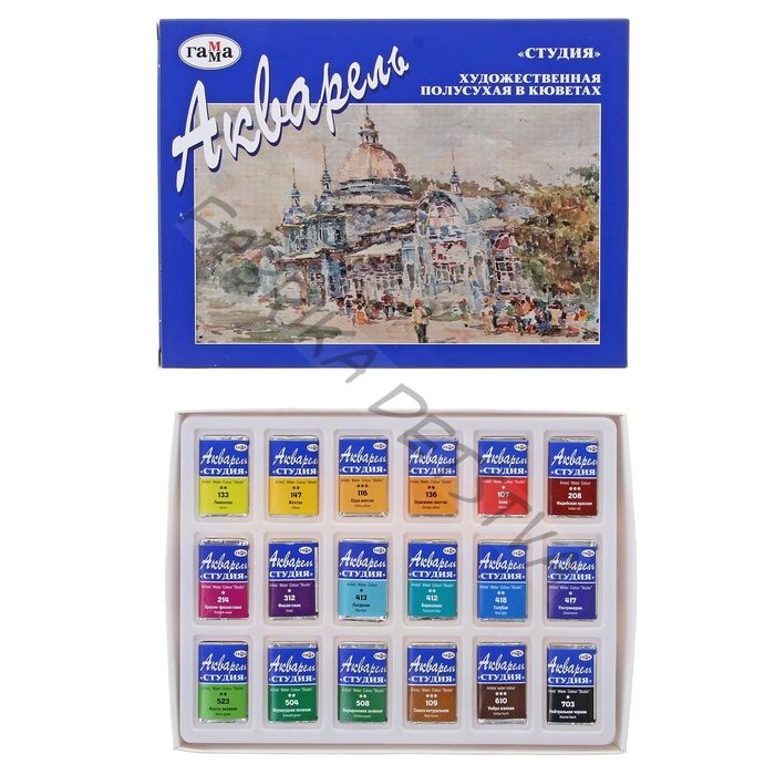 Акварель художественная в кюветах «Гамма. Студия», 18 цветов x 2.5 мл