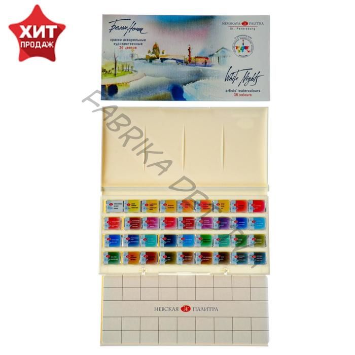 Акварель художественная в кюветах «ЗХК. Белые ночи», 36 цветов x 2.5 мл, пластиковая палитра