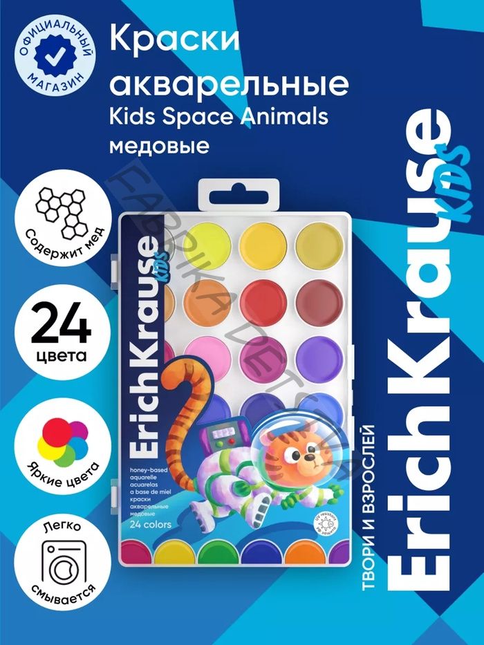 Акварель медовая ErichKrause Jolly Friends, 24 цвета, УФ-фильтр, матовые насыщенные цвета, пластиковая коробка с европодвесом