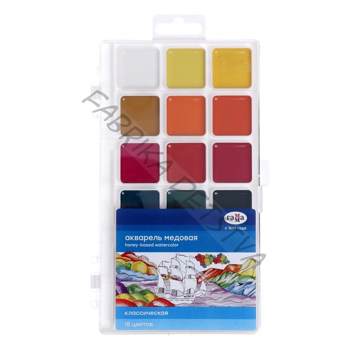 Акварель медовая «Гамма. Классическая», 18 цветов, без кисти, пластик, европодвес