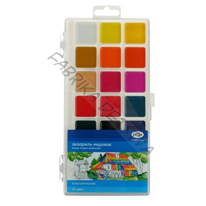 Акварель медовая «Гамма. Классическая», 21 цвет, без кисти, пластик