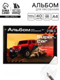 Альбом для рисования 40 листов А4 на скрепке SuperCar обложка 160 г/м2, бумага 100 г/м2.