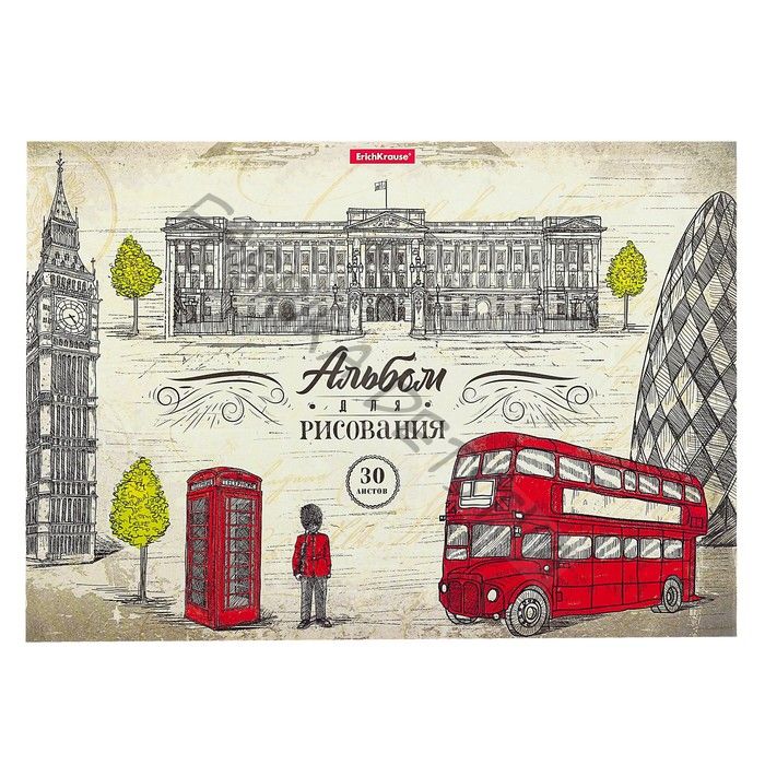 Альбом для рисования А4, 30 листов, на клею, Erich Krause Great Britain, обложка мелованный картон, жёсткая подложка, блок 120 г/м2