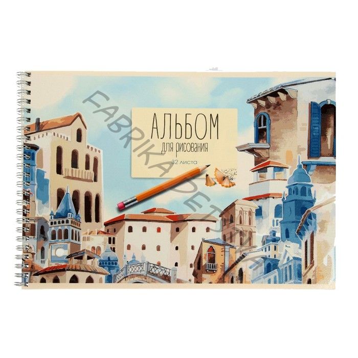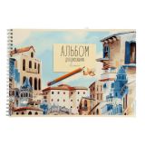 Альбом для рисования А4, 32 листа на гребне "Акварельный город", обложка мелованный картон, глянцевая ламинация, блок 100 г/м2