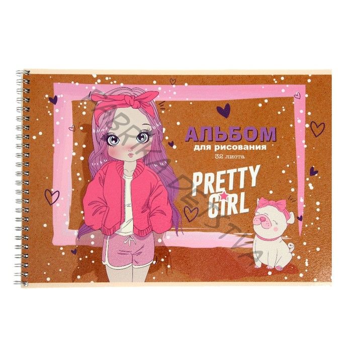 Альбом для рисования А4, 32 листа на гребне "Девочка и мопс", обложка мелованный картон, глянцевая ламинация, блок 100 г/м2