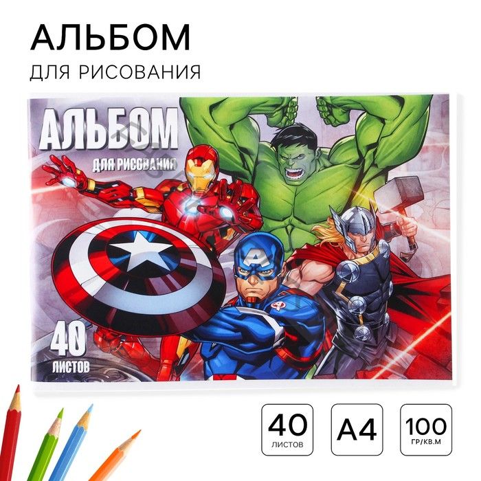 Альбом для рисования А4, 40 листов 100 г/м2, на скрепке, «Мстители»
