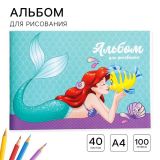 Альбом для рисования А4, 40 листов 100 г/м2, на скрепке, «Принцессы»