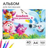 Альбом для рисования А4, 40 листов 100 г/м2, на скрепке, «Смешарики»