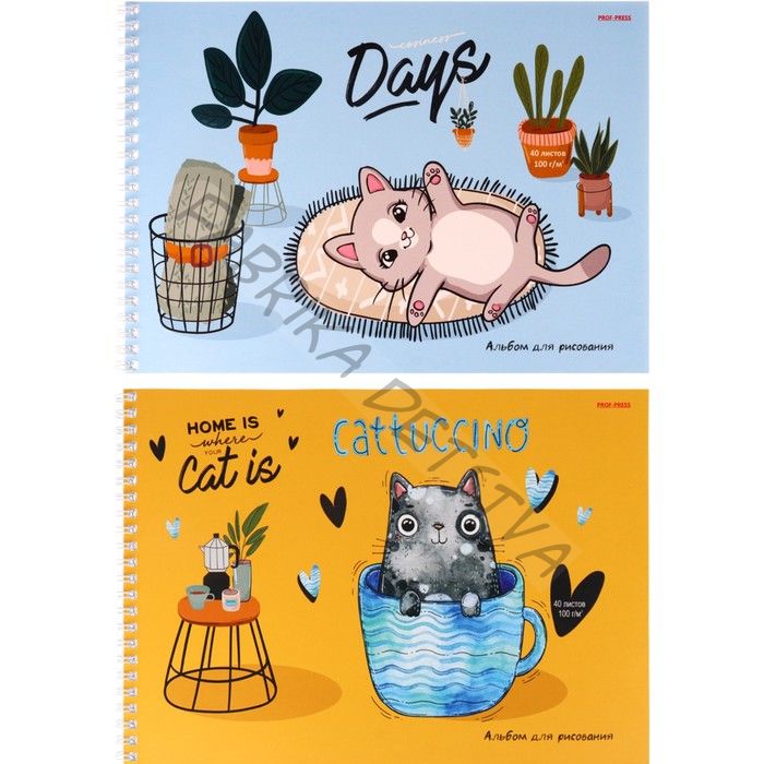 Альбом для рисования А4, 40 листов на гребне "Будни кошечек", бумажная обложка, блок офсет, МИКС