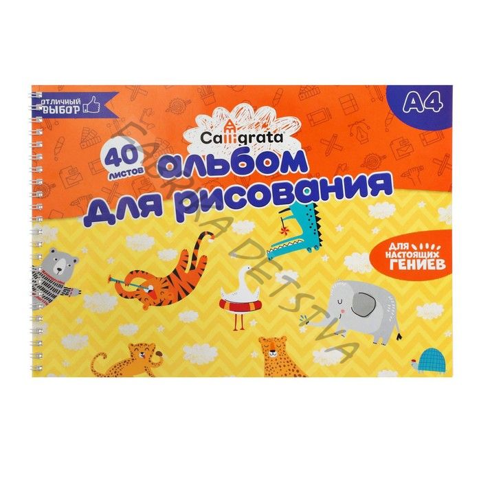 Альбом для рисования А4, 40 листов на гребне Calligrata, обложка мелованный картон, блок 100 г/м2