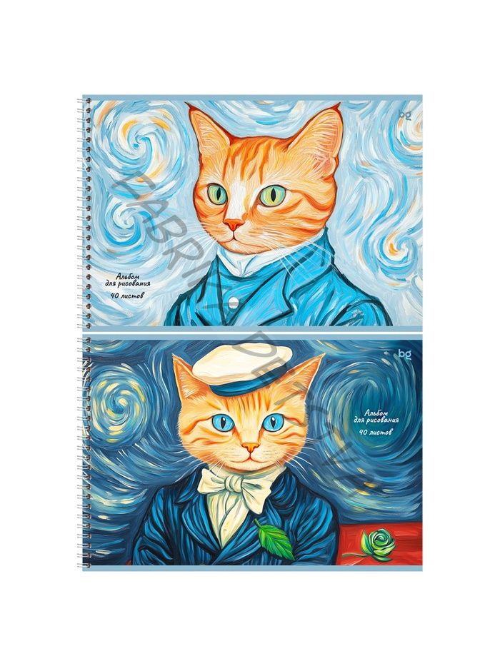 Альбом для рисования А4, 40 листов на гребне «Ван Кот», блок офсет 100 г/м2, МИКС
