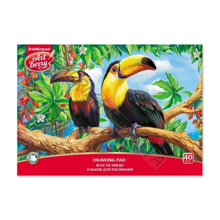 Альбом для рисования А4, 40 листов на клею ArtBerry «Экзотические птицы», обложка мелованный картон 170 г/м2, жёсткая подложка, блок 120 г/м2