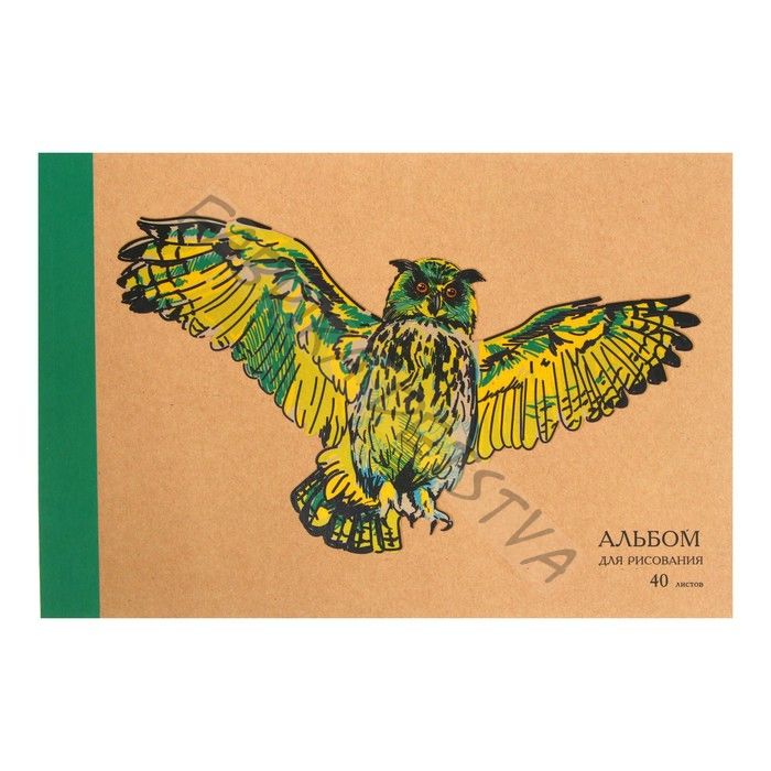 Альбом для рисования А4, 40 листов на клею, "Яркий филин", крафт-картон, выборочный лак, 120 г/м2