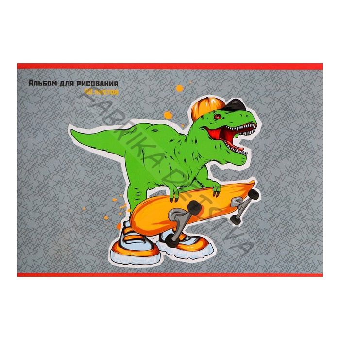 Альбом для рисования А4, 40 листов на скрепке, "Дино скейтер", обложка мелованный картон, глянцевая ламинация, блок 110 г/м2
