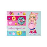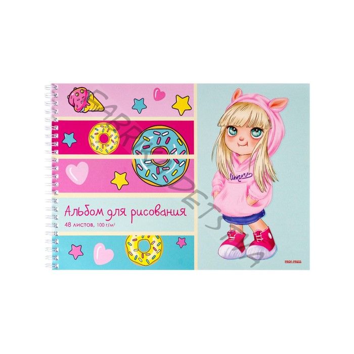 Альбом для рисования А4, 48 листов на гребне "Малышка и пончики", бумажная обложка, блок офсет