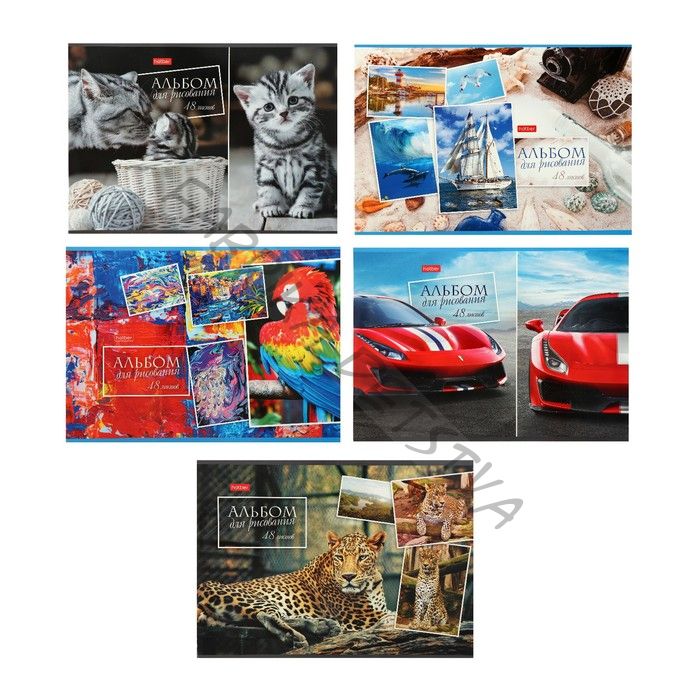 Альбом для рисования А4, 48 листов на скрепке "Ассорти", обложка мелованный картон, перфорация на отрыв, блок 100 г/м2