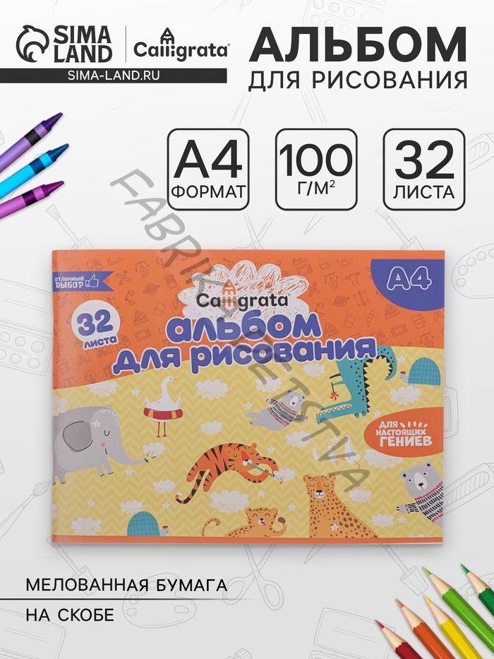 Альбом для рисования Calligrata А4, 32 листа на скрепке, обложка мелованная бумага 120 г/м2, внутренний блок офсет 100 г/м2