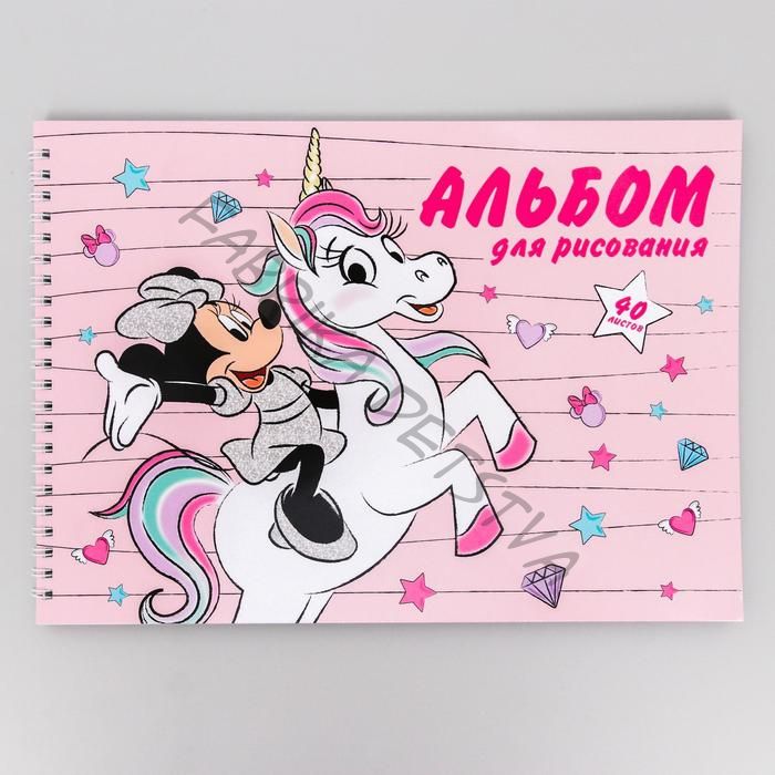 Альбом для рисования на гребне, А4, 40 л., "Минни с единорогом", Минни Маус