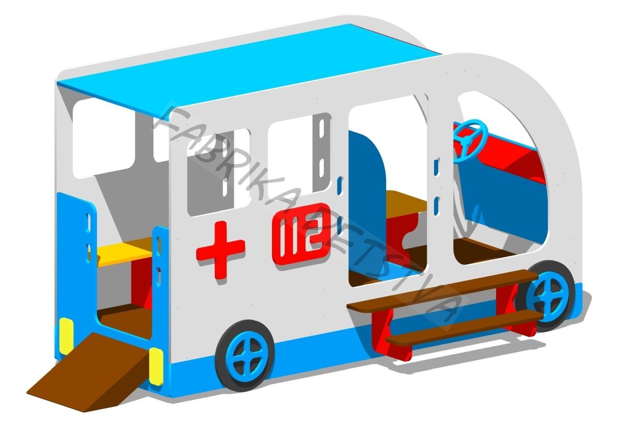 Выполняется из материалов: Фанера ФСФ, мм: 18. Брус, мм: 45*90. Настил пола выполнен из доски толщиной, мм: 28. Труба стальная профильная, мм: 20*20*1,5 40*20*1,5 40*40*1,5. Труба стальная электросварная круглая, мм: ?20*2,8 Фанерные части окрашены алкидными эмалями «Текс» («Тиккурила») в 2 раза с предварительным антисептированием алкидным грунтом-антисептик. Деревянные части покрыты цветным антисептиком с воском в два раза. Металлические элементы обезжирены и покрыты порошковой краской в 2 слоя. Пластиковые заглушки на болты и трубы.