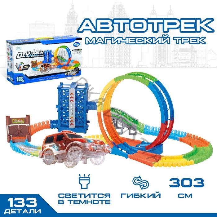 Автотрек «Магический Трек», гибкий, светится в темноте, 133 детали, лифт, мёртвая петля