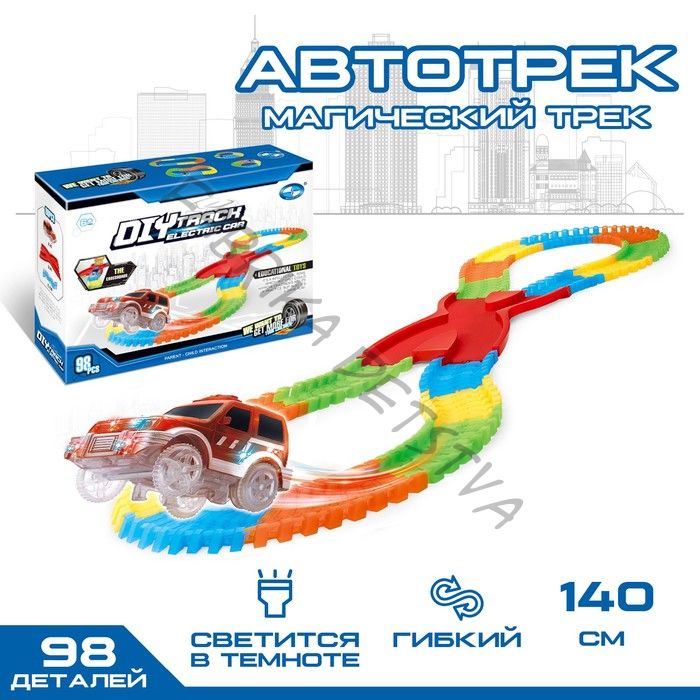 Автотрек «Магический Трек», гибкий, светится в темноте, 98 деталей