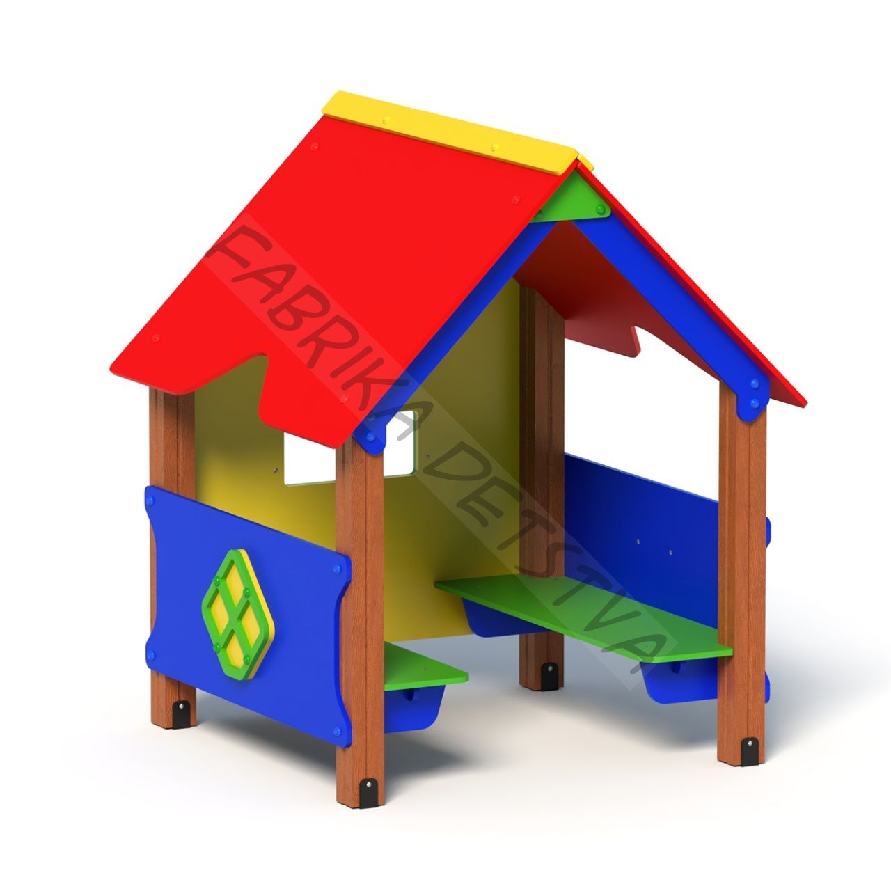 Качественное исполнение делает его безопасным для использования в любых детских играх. Встроенные скамейки позволяют отдыхать, спасаясь от летнего зноя и атмосферных осадков, так что такой детский домик имеет универсальное назначение.