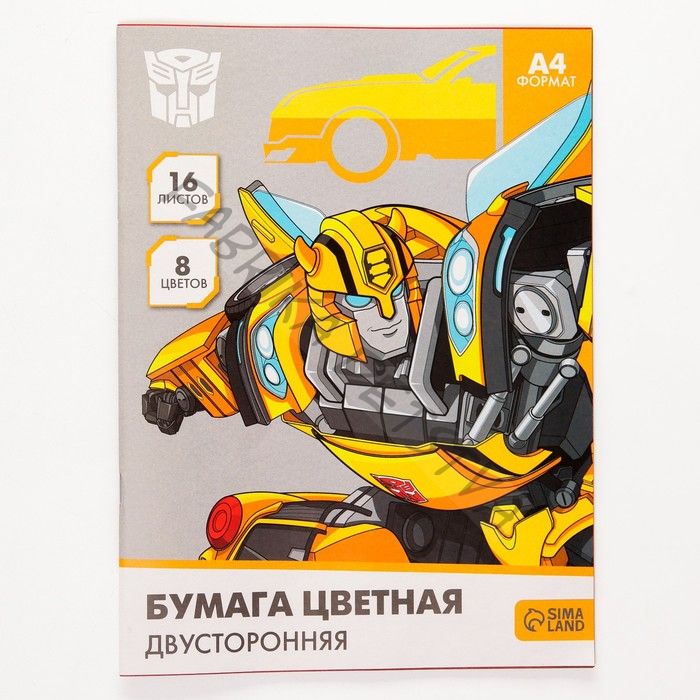 Бумага цветная двусторонняя, А4, 16 л., 8 цв., Transformers
