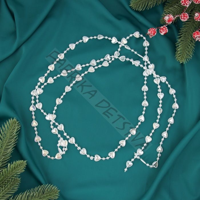 Бусы на ёлку 2 м d=13 мм «Сердца бусины» прозрачный перламутр