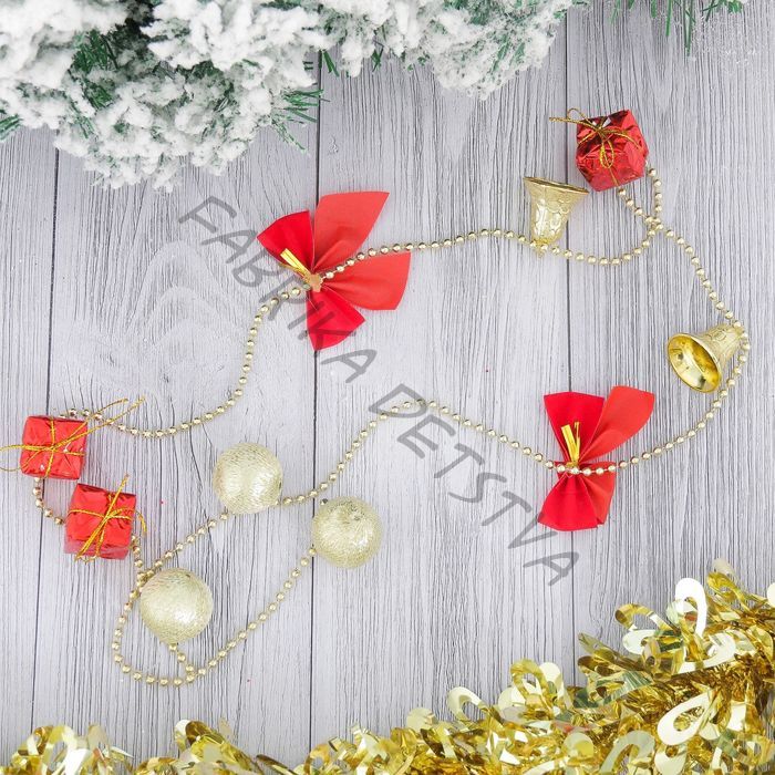 Бусы на ёлку «Банты, колокольчики, подарки», 90 см, красно - золотистые