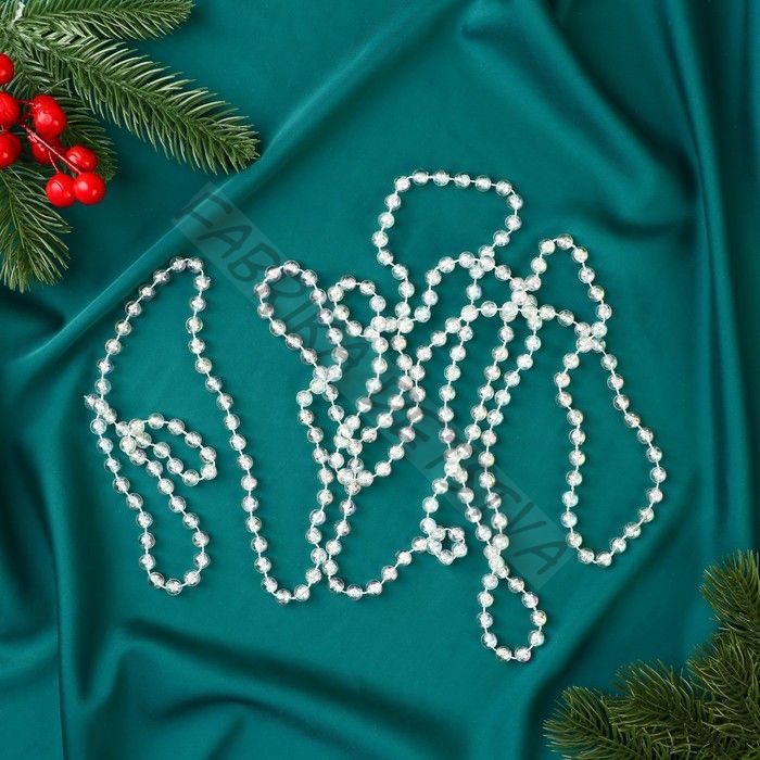 Бусы на ёлку «Лёд», длина 2.7 м, d=5 мм, прозрачные перламутровые