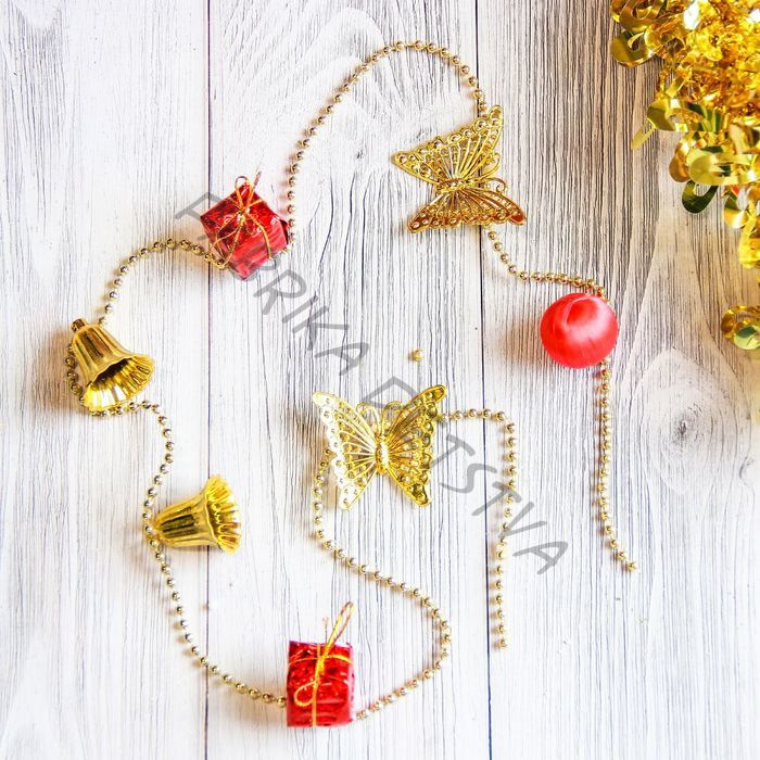 Бусы на ёлку «Подарки, колокольчики, шарики», длина 1 м, золотисто - красные