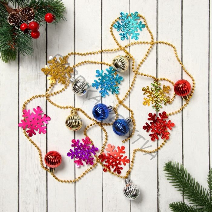 Бусы на ёлку «Снежинки и шарики», длина 2 м, разноцветные