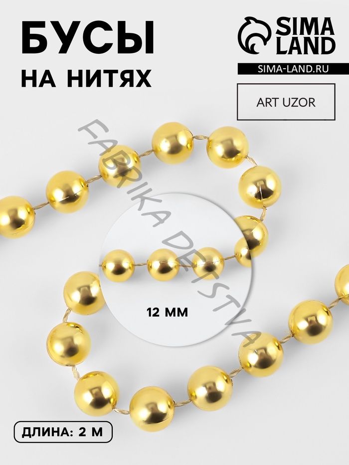 Бусы на нитях, 12 мм, 2 м, цвет золотой