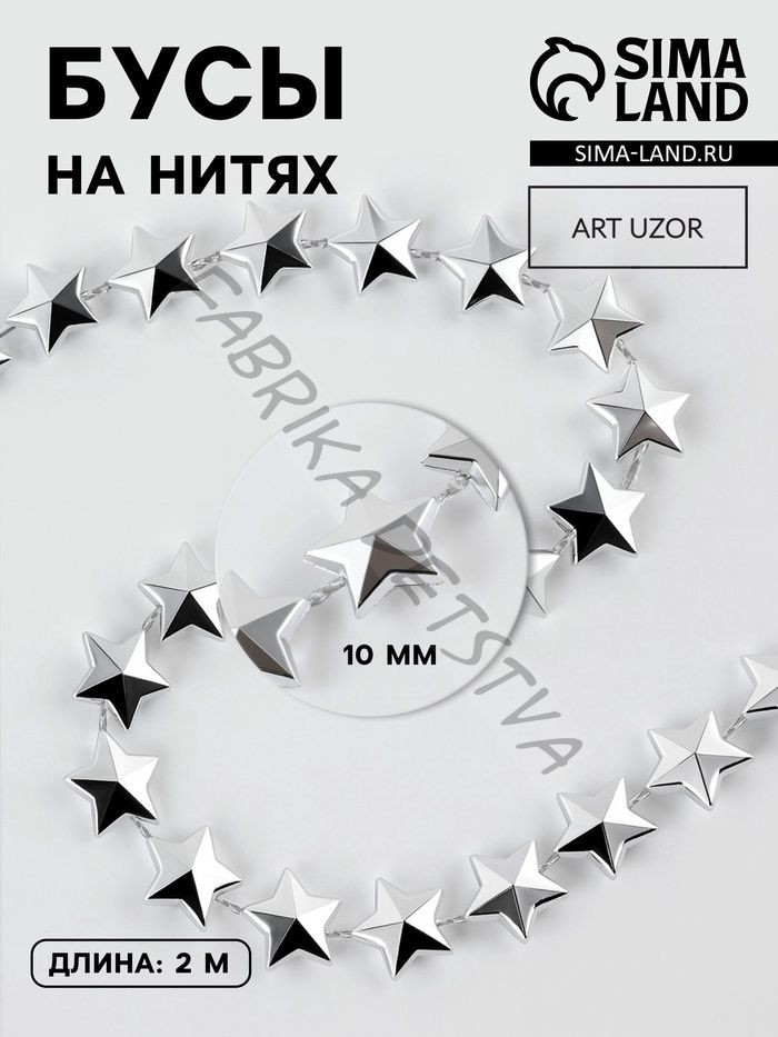 Бусы на нитях «Звёзды», 10 мм, 2 м, цвет серебряный