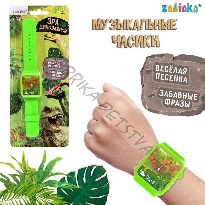 Часы детские музыкальные «Эра динозавров», звук, цвет зелёный