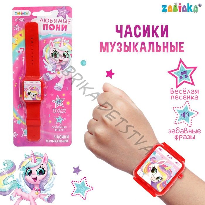 Часы детские музыкальные «Любимые пони», звуковые эффекты, цвет красный