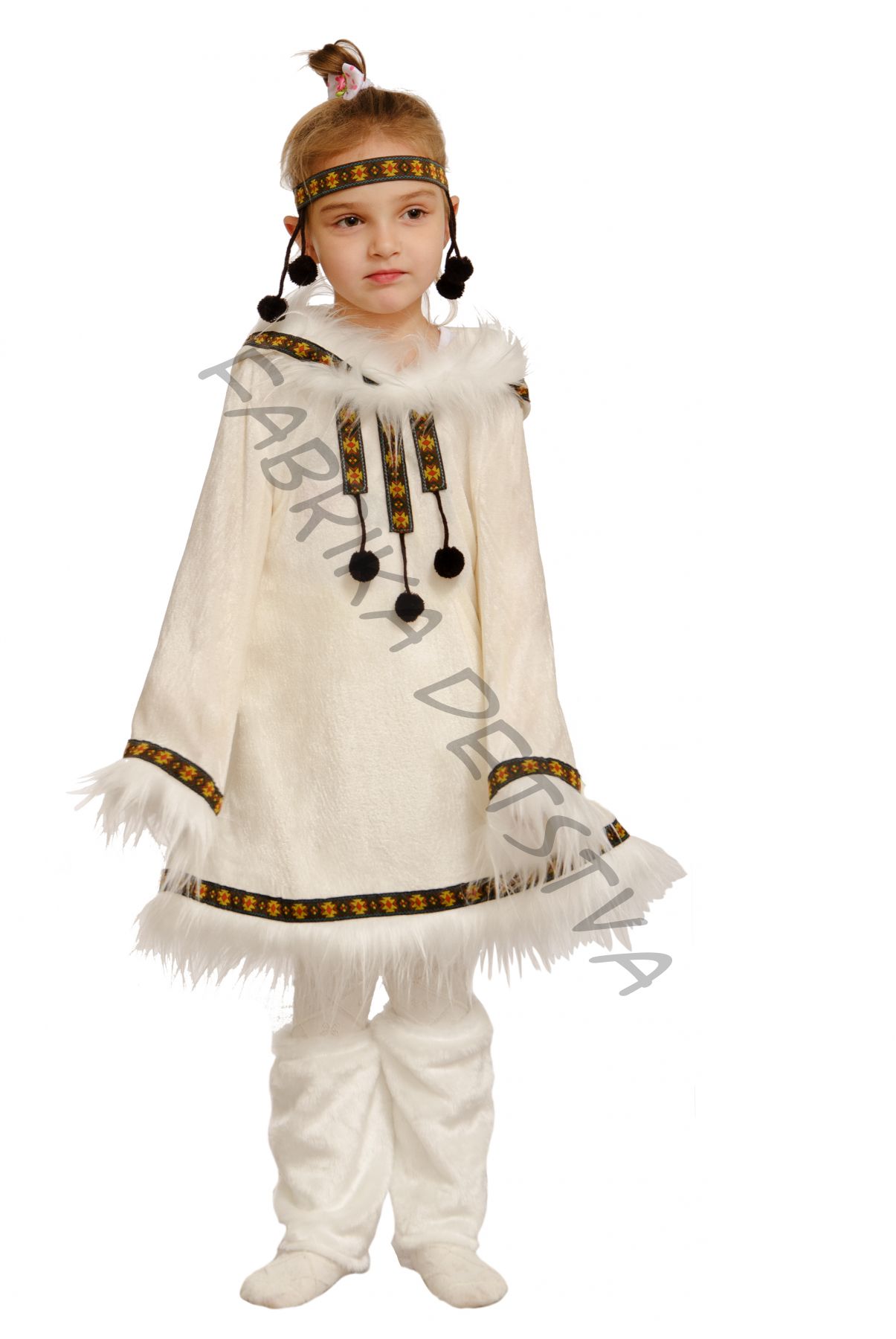 Карнавальный костюм "Чукча девочка" в национальном стиле помогает легко воплотится в образ. Отлично подходит для тематических и театральных постановок, праздников и Нового года.