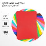 Цветной картон двусторонний, А4, 36 л., 18 цв., немелованный, 180 г/м2